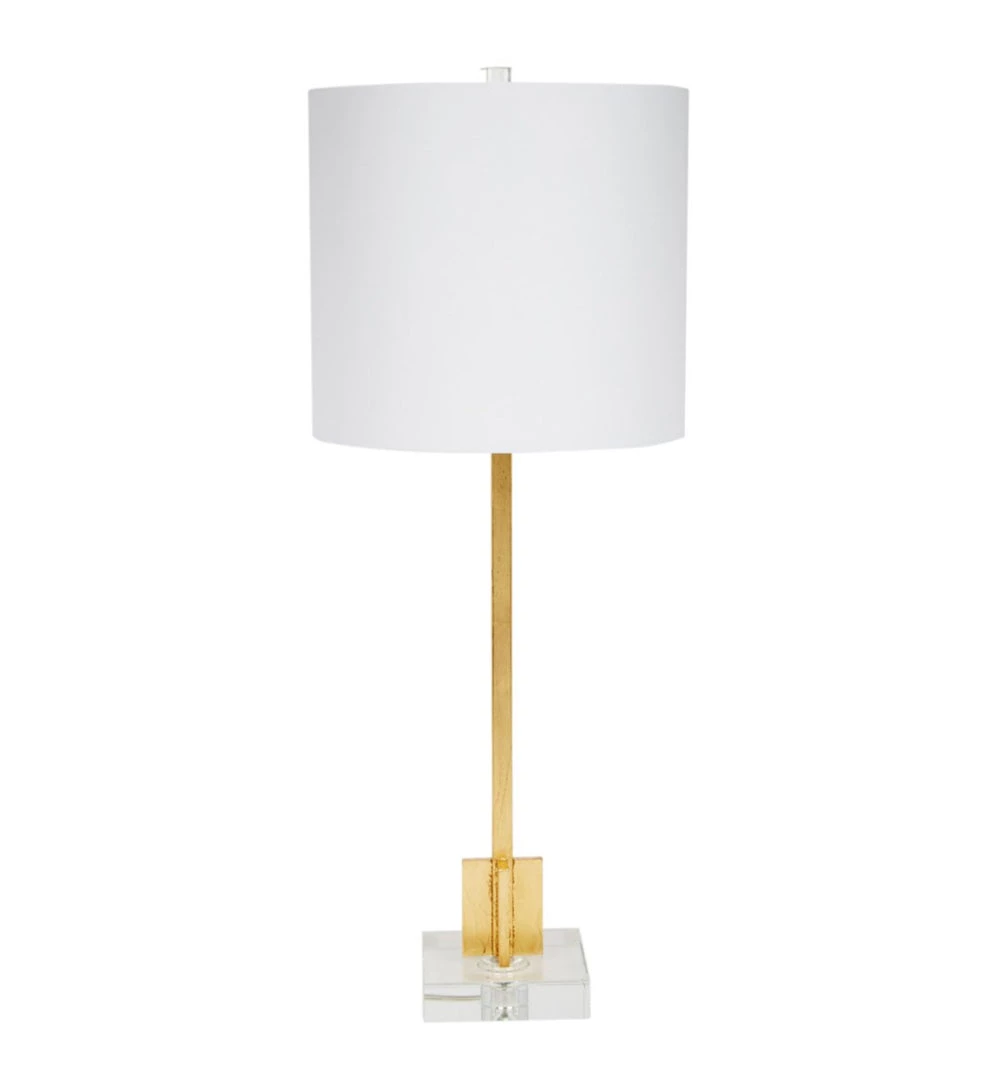 ABITA GOLD LEAF BUFFET LAMP WITH CRYSTAL BASE & WHITE LINEN SHADE