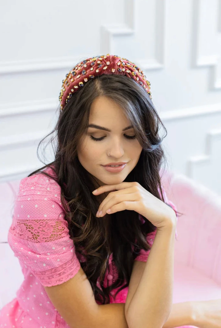 Total show stopper! Glamorous and beautiful are just the words to describe this Burgundy Velvet headband! With Jeweled detailing you are sure to dress up any outfit!