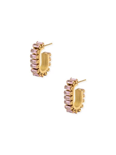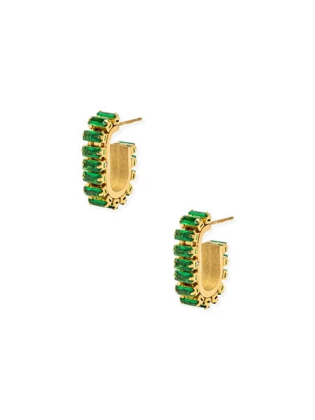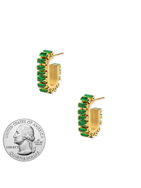 Add the perfect pop of spark of color with these CZ baguette small hoops. Available in 2 colors : Green and Pink