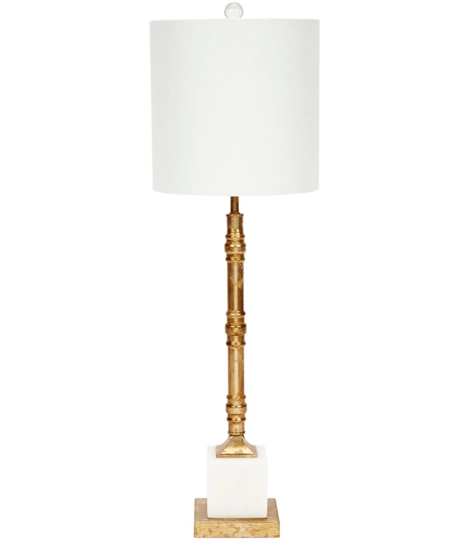 Indigo Boutique CARSON AGED GOLD METAL LAMP WITH WHITE MARBLE BASE & WHITE LINEN SHADE Furniture