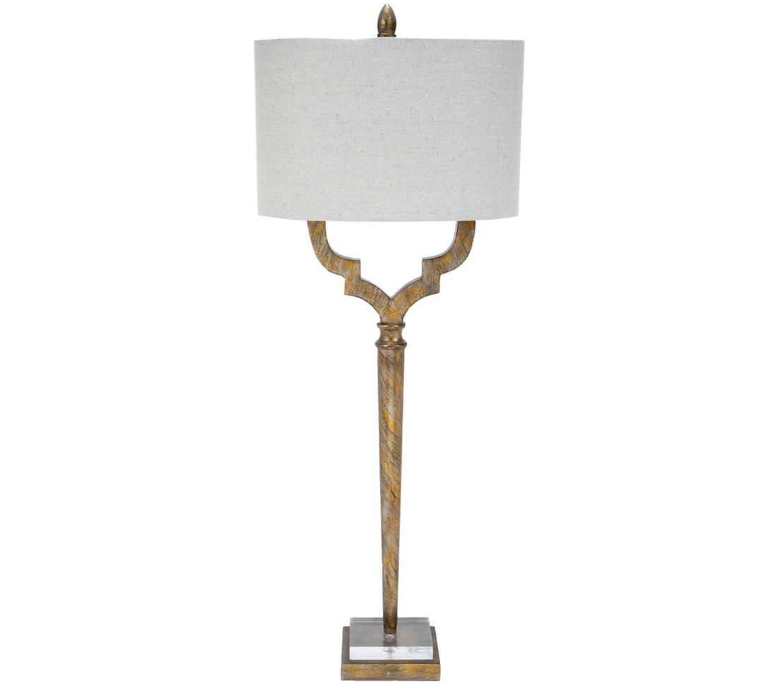 Indigo Boutique CHAMPAGNE GOLD QUATREFOIL BUFFET LAMP WITH OVAL LINEN SHADE Furniture