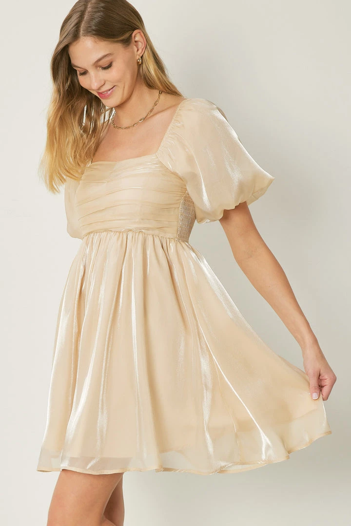 Indigo Boutique Champange Bubble Sleeve Mini Dress New Arrivals
