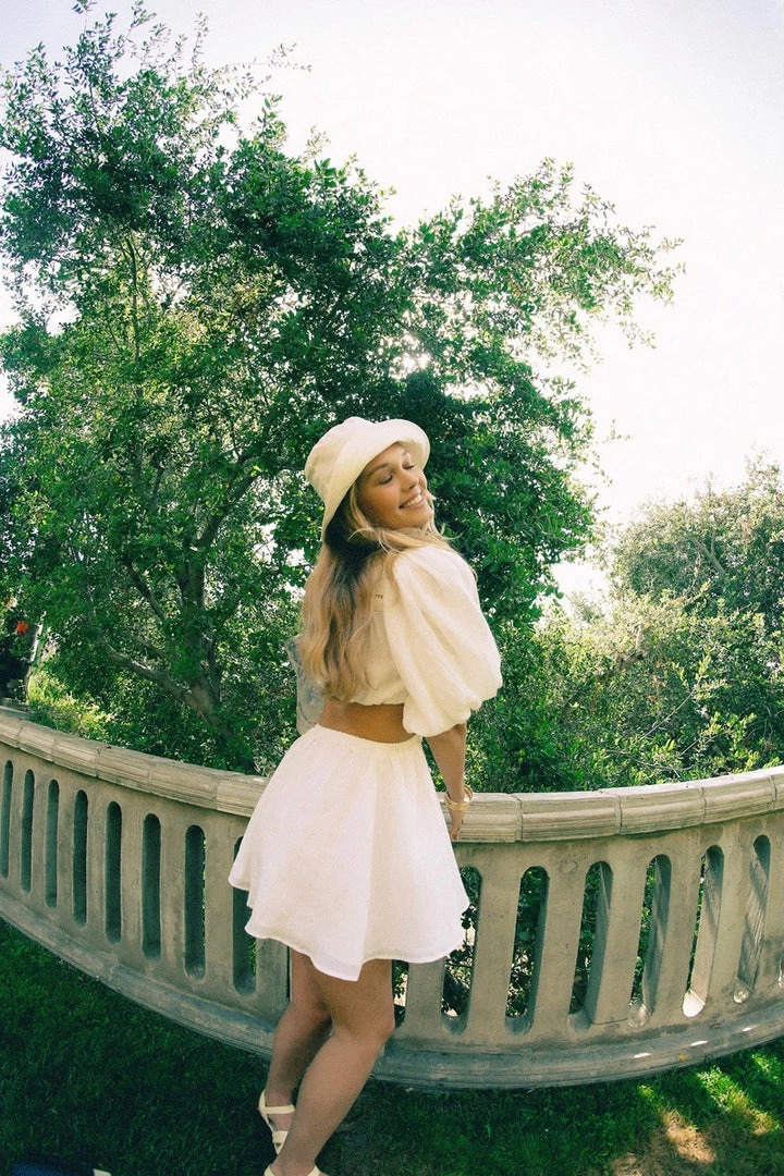 Description: Our Cutout Play Dress features puff sleeves and a flared hem.