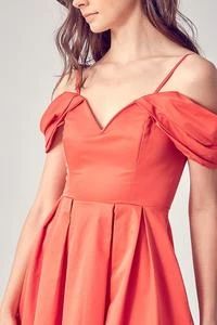 Description: OFF SHOULDER HIGH LOW A LINE COCKTAIL DRESS