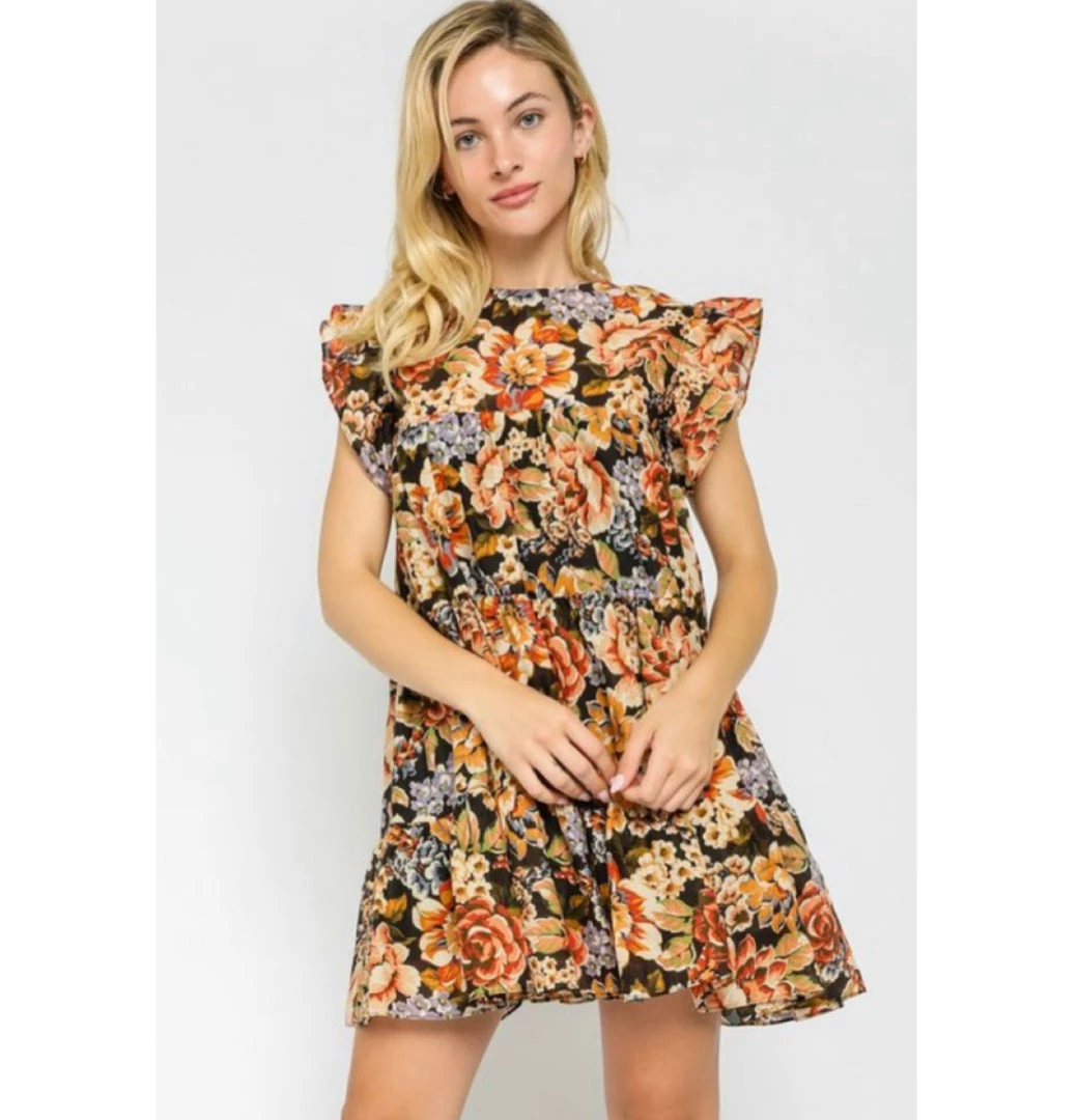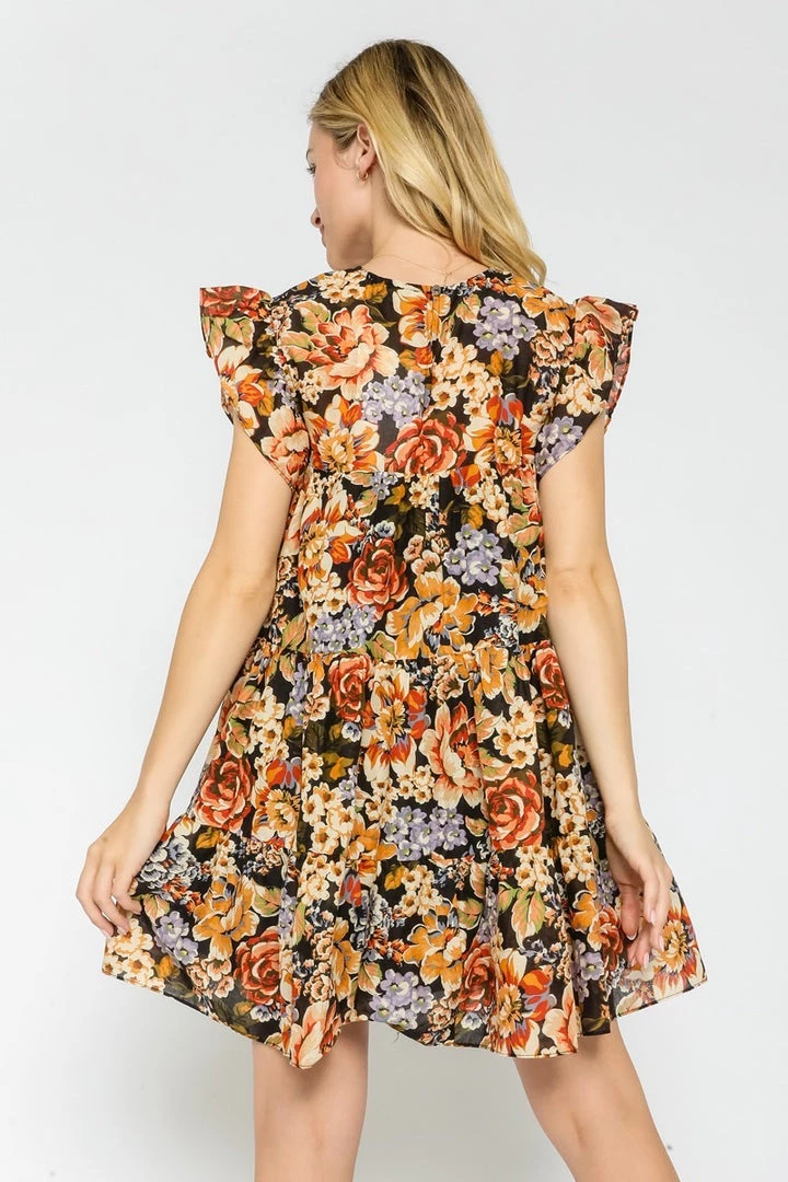 Description: Our Magnolia Floral Babydoll Dress features ruffled sleeves and a button back closure.