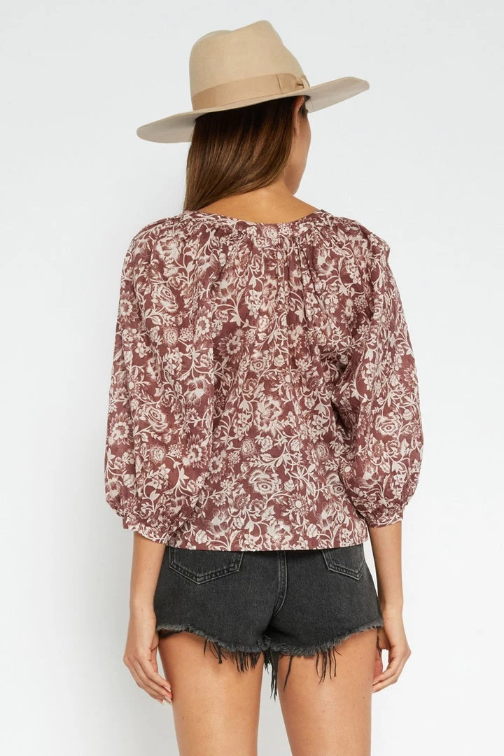 Description: Our Mauve Floral Button Up Top features a mandarin collar and relaxed fit.
