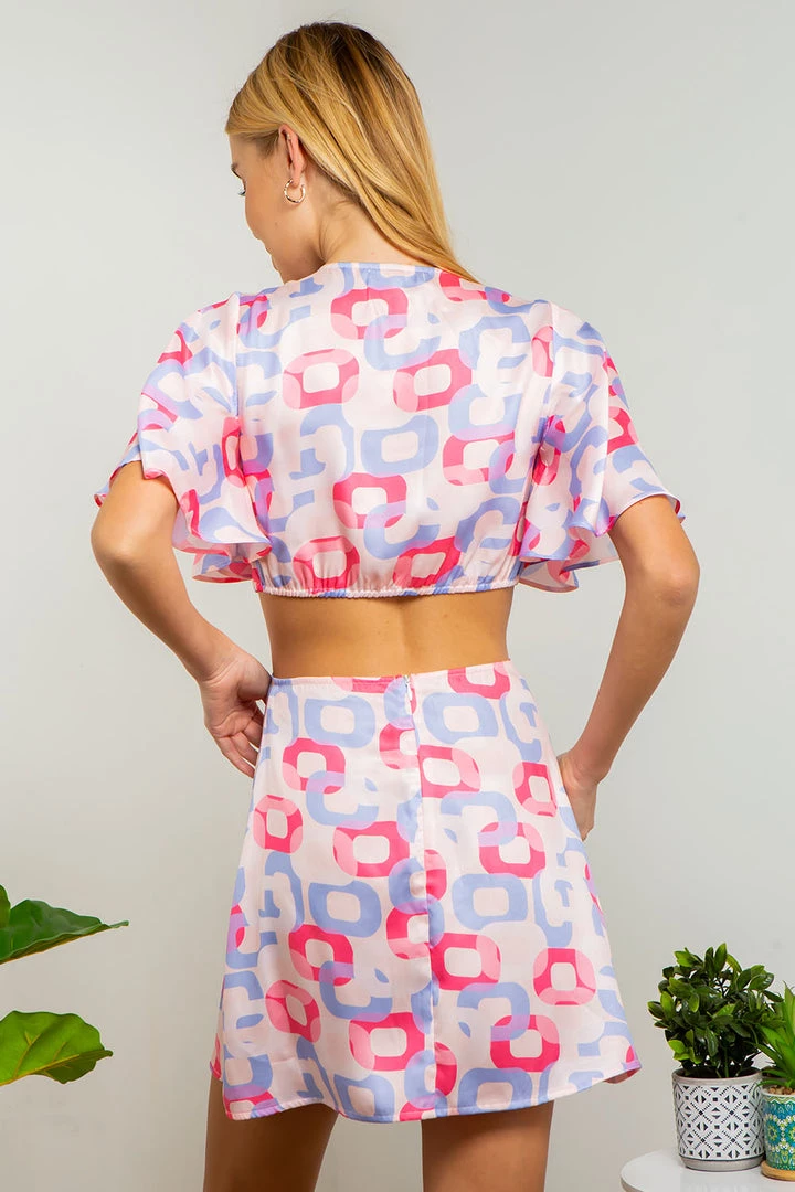 V-neck tie front Satin mini dress with full side/back cut out detail