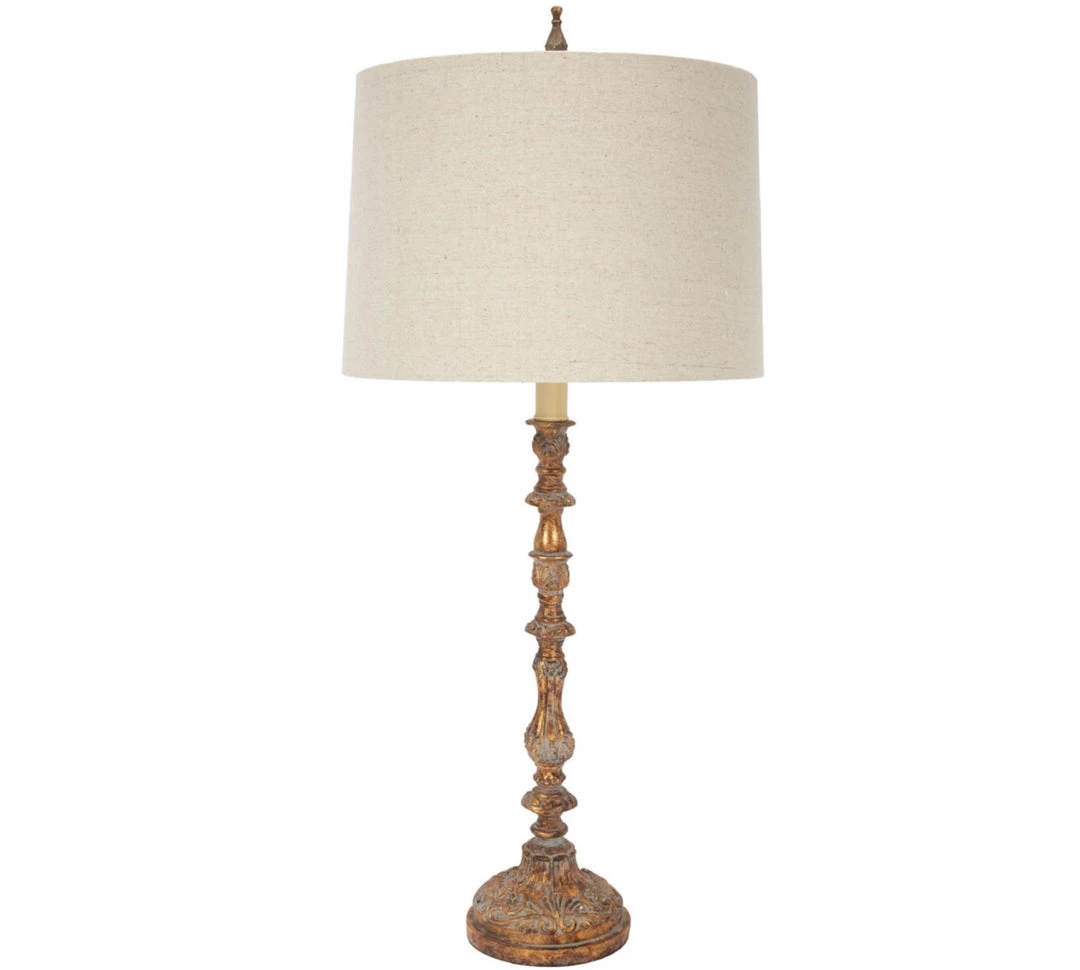 Indigo Boutique Furniture ANTIQUE GOLD BUFFET LAMP WITH WARM LINEN SHADE