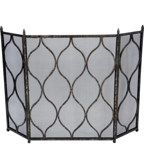ANTIQUE SILVER & BLACK SCOTT FIREPLACE SCREEN