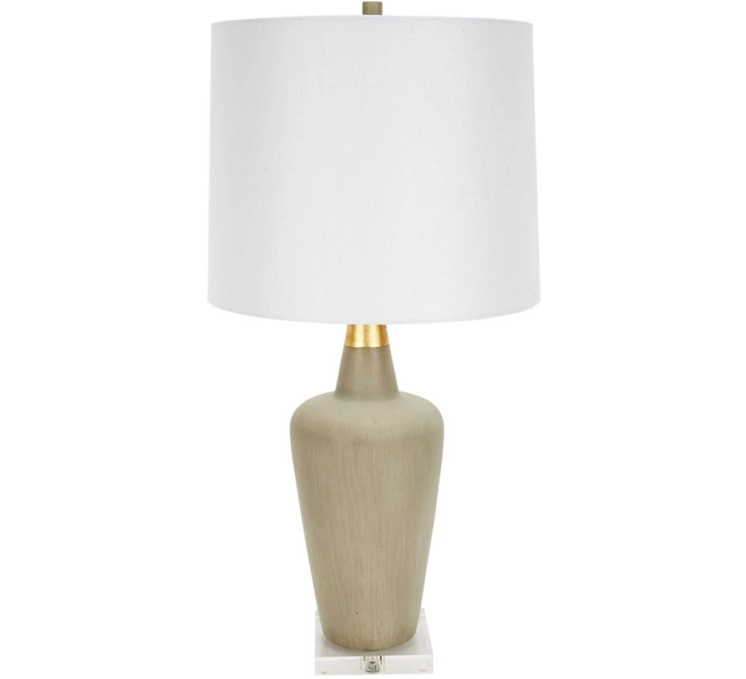 KARA CEMENT LAMP WITH GOLD ACCENT & WHITE LINEN SHADE