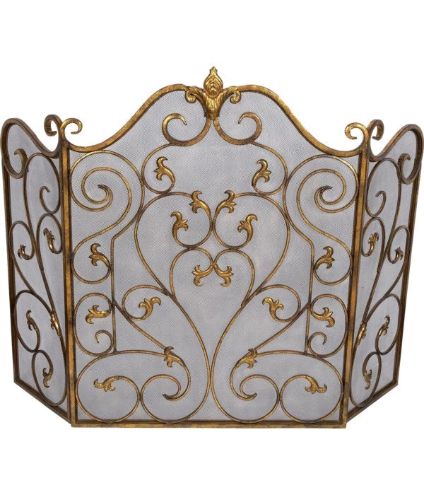TRADITIONAL SCROLL FIREPLACE SCREEN WITH BURNISHED GOLD FINISH