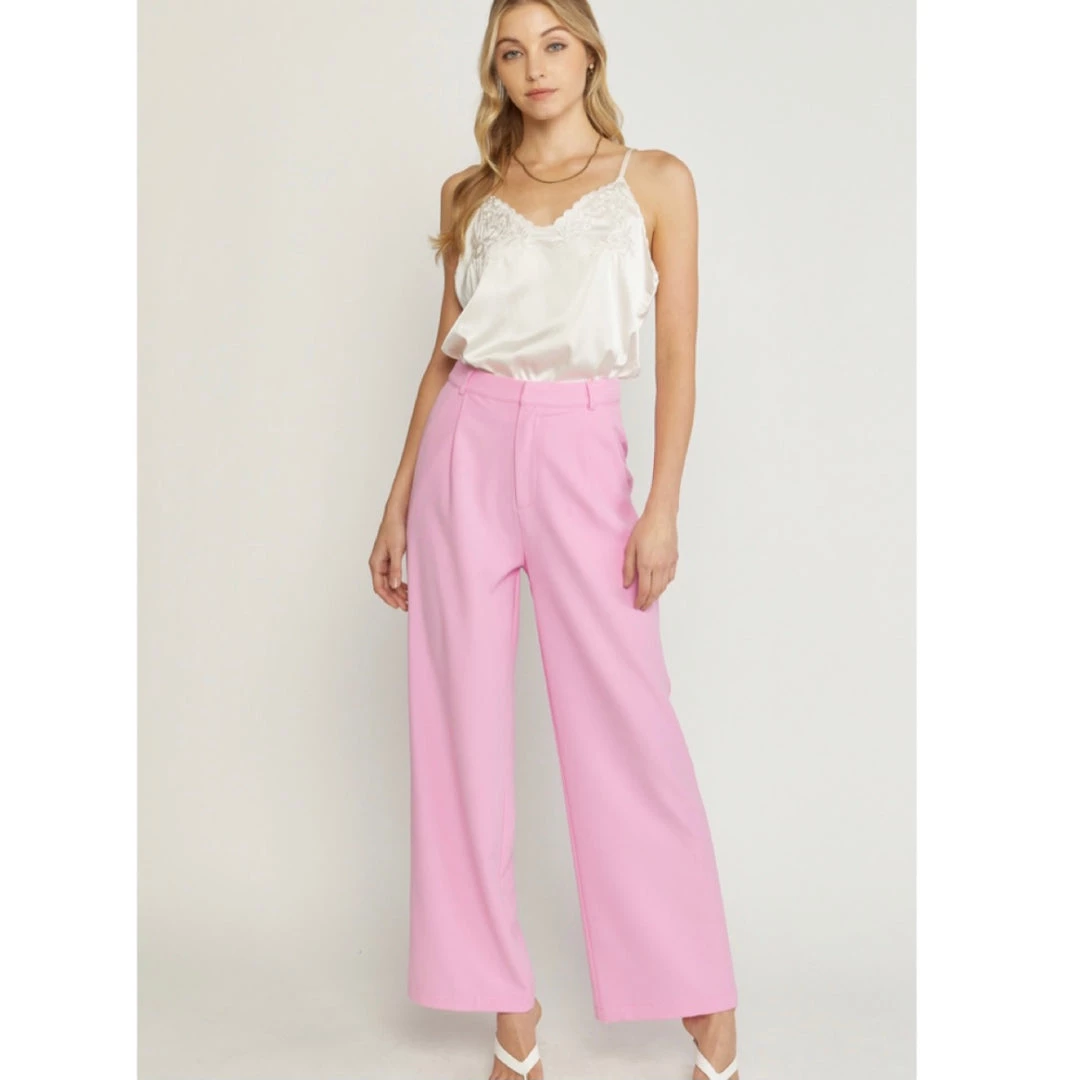Solid high waisted pants featuring pocket detail. Unlined. Non-sheer. Woven. Lightweight.
