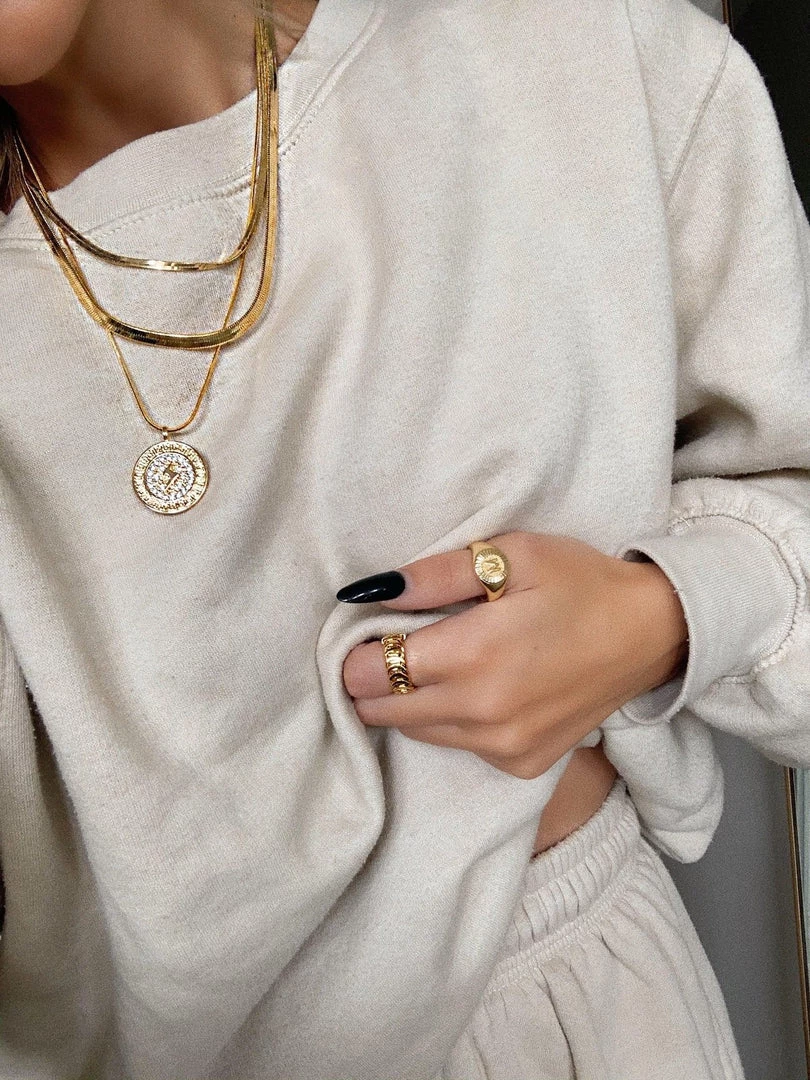 nitial medallion signet ring gives us all the feels. Timeless, vintage romantic style… Complete the look with our signature initial medallion necklace.
