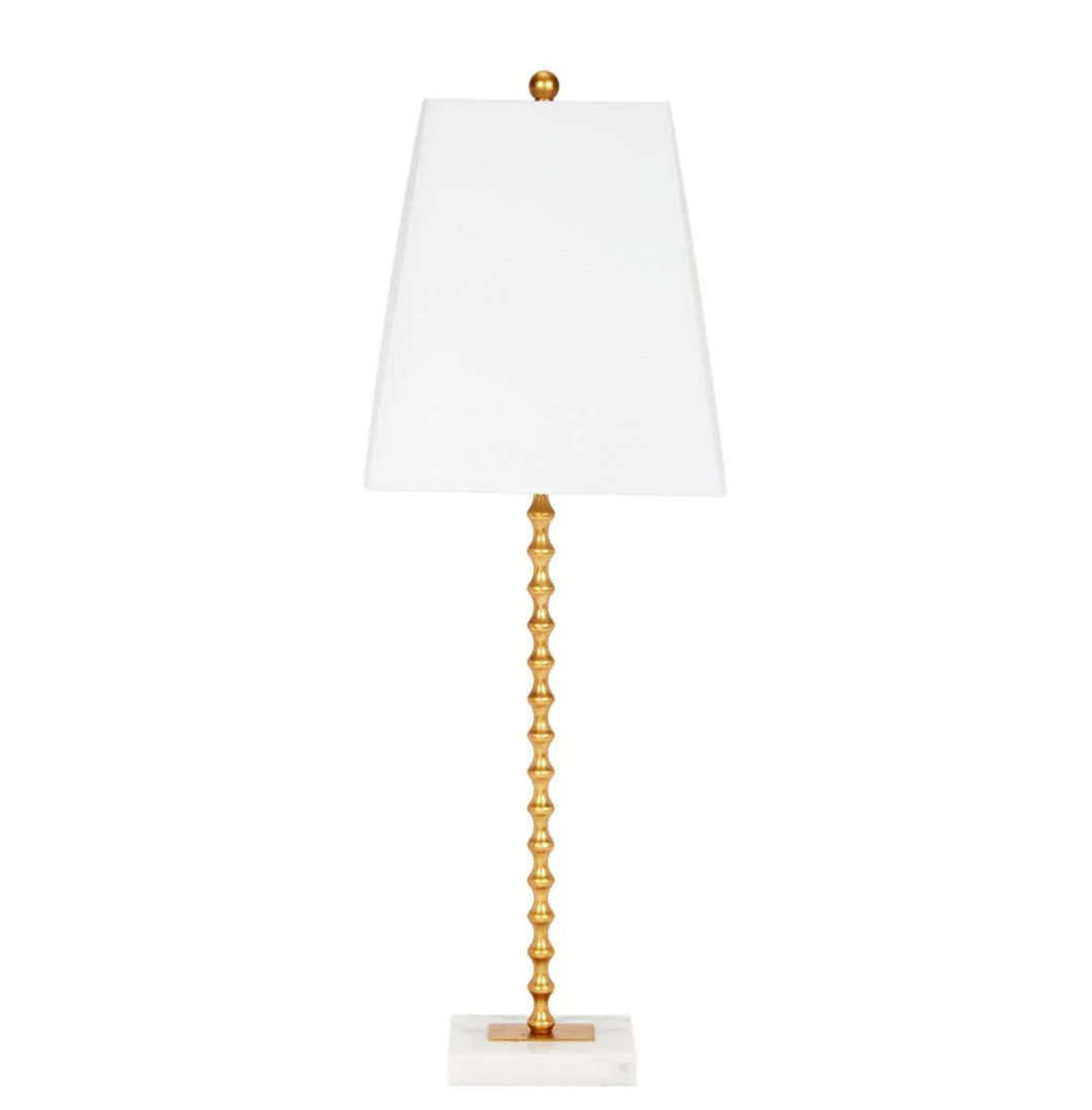 Indigo Boutique JANA GOLD BALL TABLE LAMP WITH WHITE LINEN SHADE & WHITE MARBLE BASE Furniture