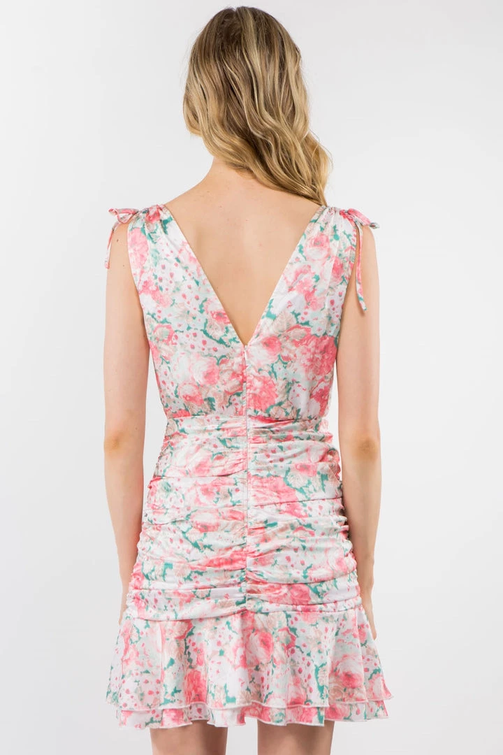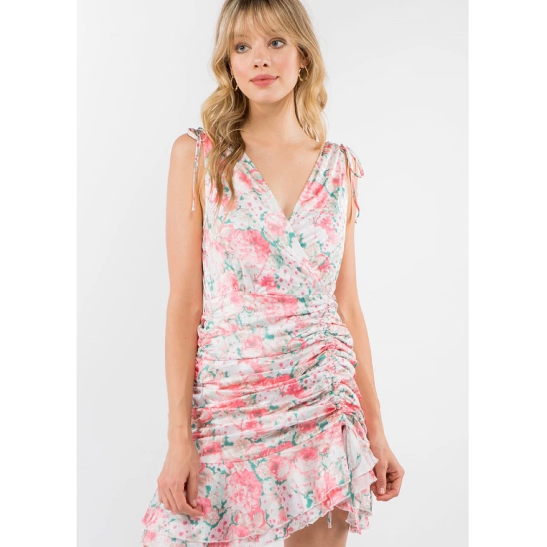 Indigo Boutique Jeni Ruched Mini Dress In Pink And Green
