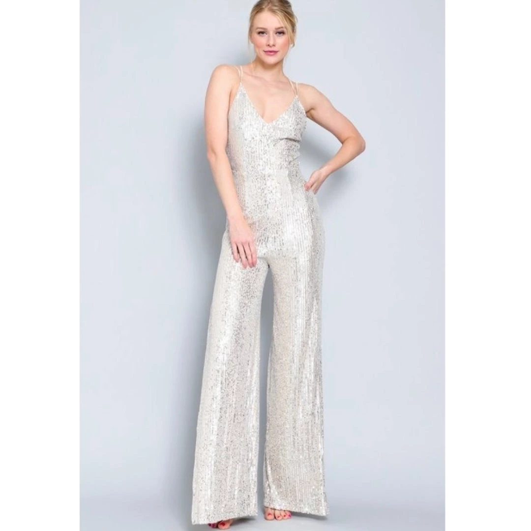 Description: SLEEVELESS V-NECK ACROSS BACK JUMPSUIT