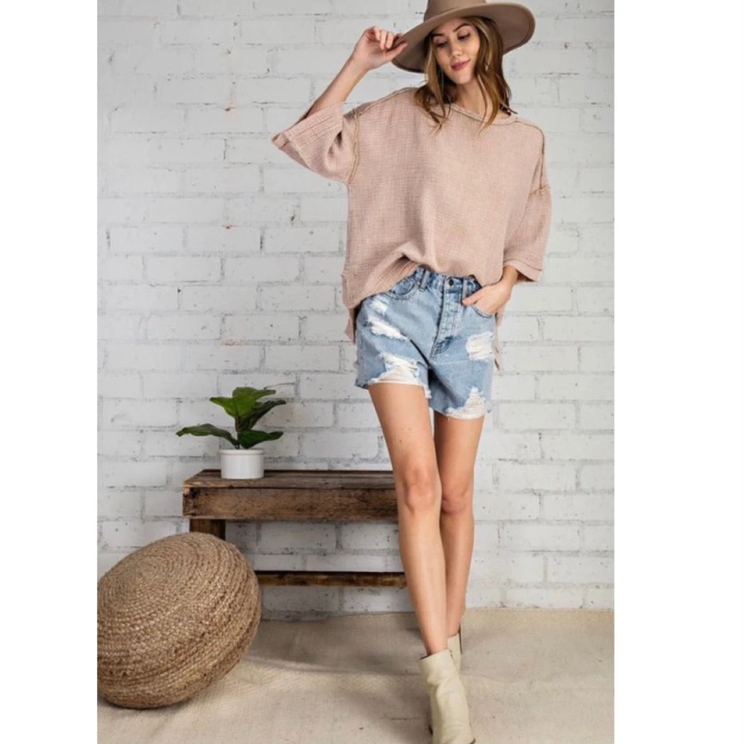 Description: DISTRESSED WASHED DENIM SHORT PANTS