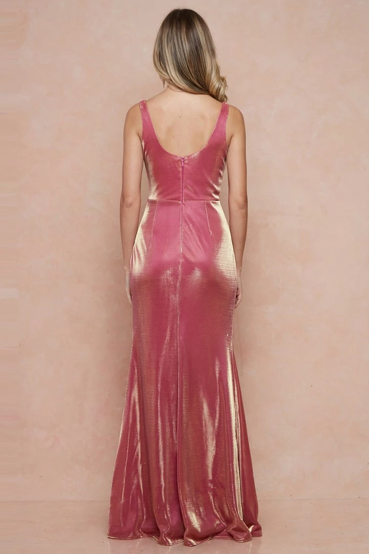 Description: – SLEEVELESS SHINY FABRIC DRESS