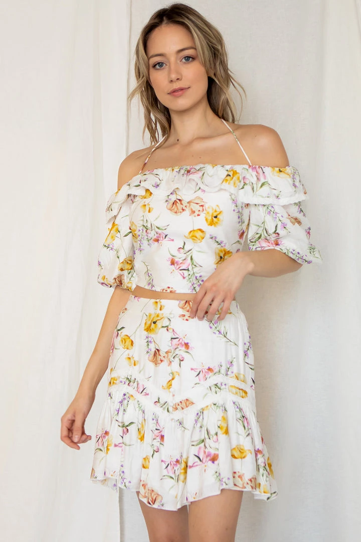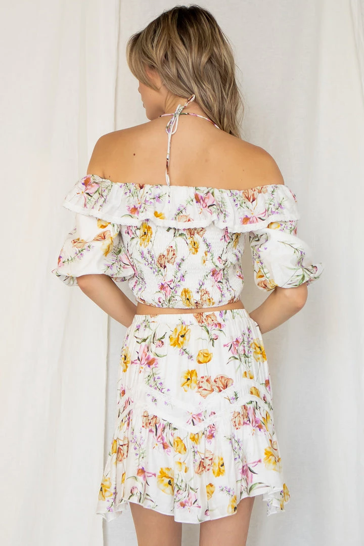 Off the shoulder crop top with back smock detail