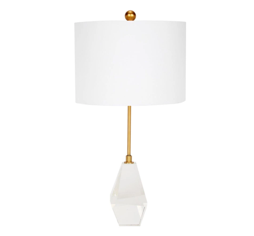 Indigo Boutique MONTICELLO CRYSTAL LAMP WITH WHITE LINEN BARREL