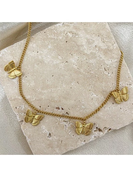 DAINTY CHAIN WITH 4 GOLD BUTTERFLY CHARMS WATER RESISTANT STYLE