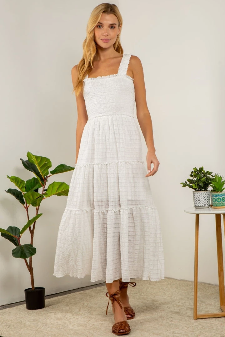Indigo Boutique New Arrivals Smocked Chest Tiered Midi Dress