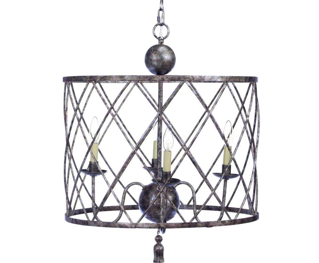 OPEN WEAVE CHANDELIER WITH HAND RUBBED AGED SILVER FINISH