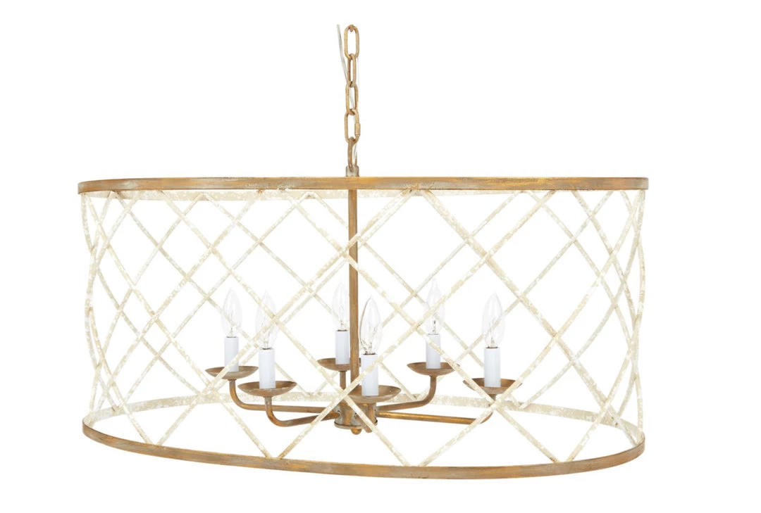 OPEN WEAVE FRENCH WHITE & GOLD OVAL CHANDELIER