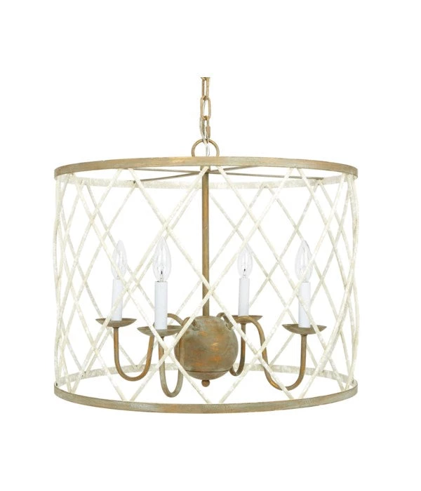 OPEN WEAVE FRENCH WHITE & GOLD ROUND CHANDELIER