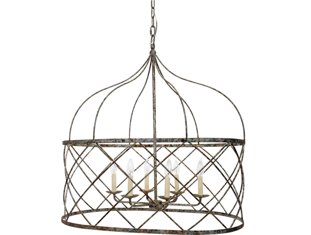 OPEN WEAVE OVAL HOLLEY CHANDELIER WITH HAND RUBBED AGED SILVER FINISH