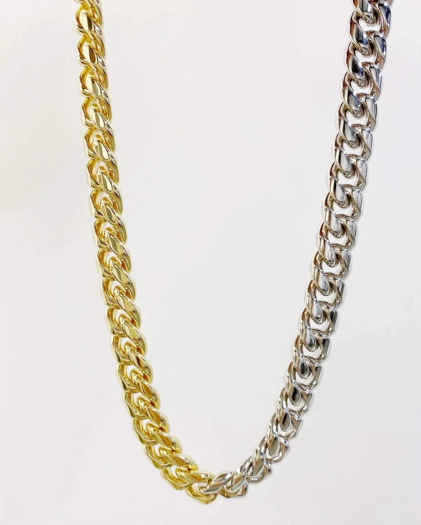 Best of both worlds with our Peyton two tone chain. 14k gold filled and sterling silver all in one beautiful cuban link chain.