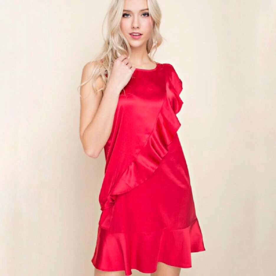 Description: SLEEVELESS RUFFLED ROUND NECK MINI COCKTAIL DRESS
