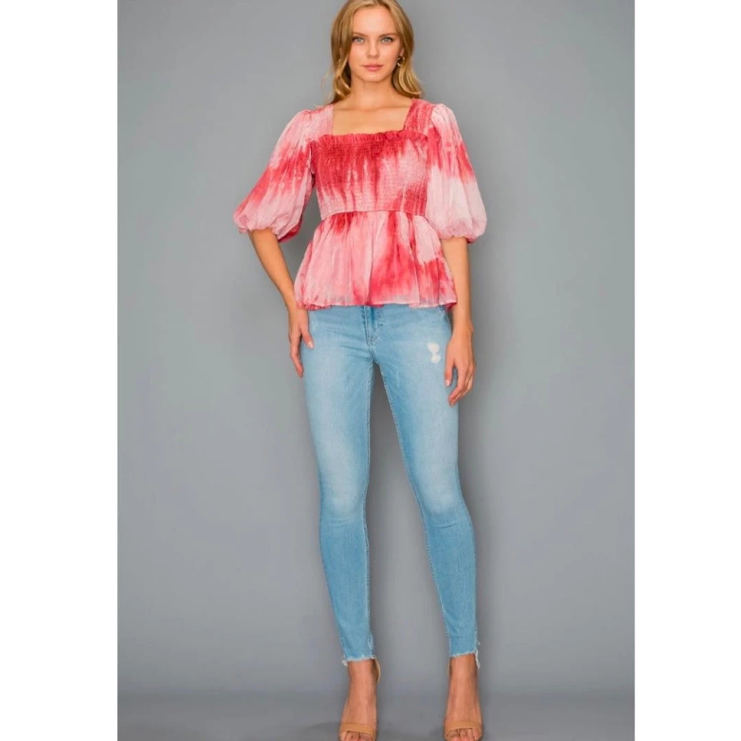 Rouched Tie Dye Blouse