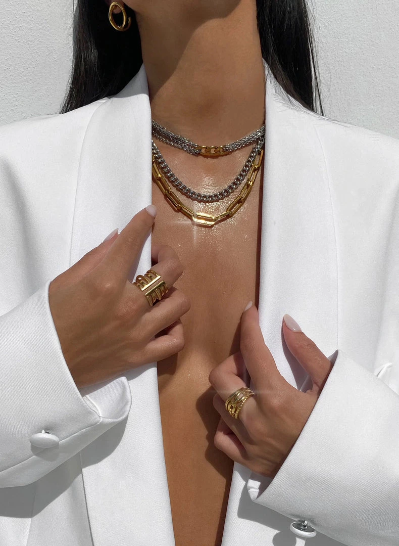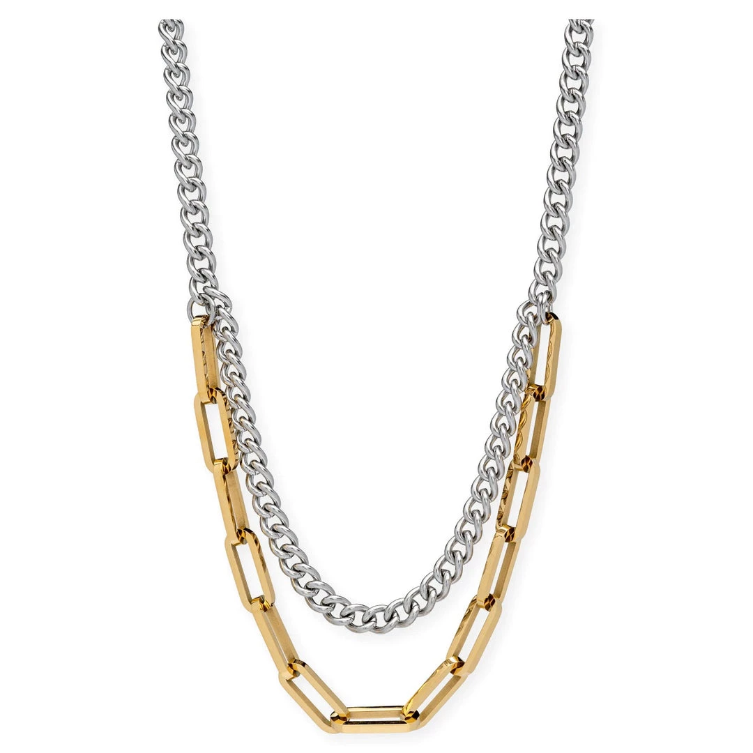 Layered mixed tone necklace with bold edgy chain that can transition for any outfit.