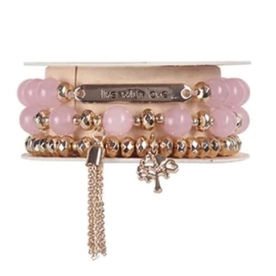 Live with Love-do all things with love. Let this stack be a daily reminder to do all things with love and to lead a life filled with love. This stack features rose quartz, which is a stone that harnesses love, peace, and healing.