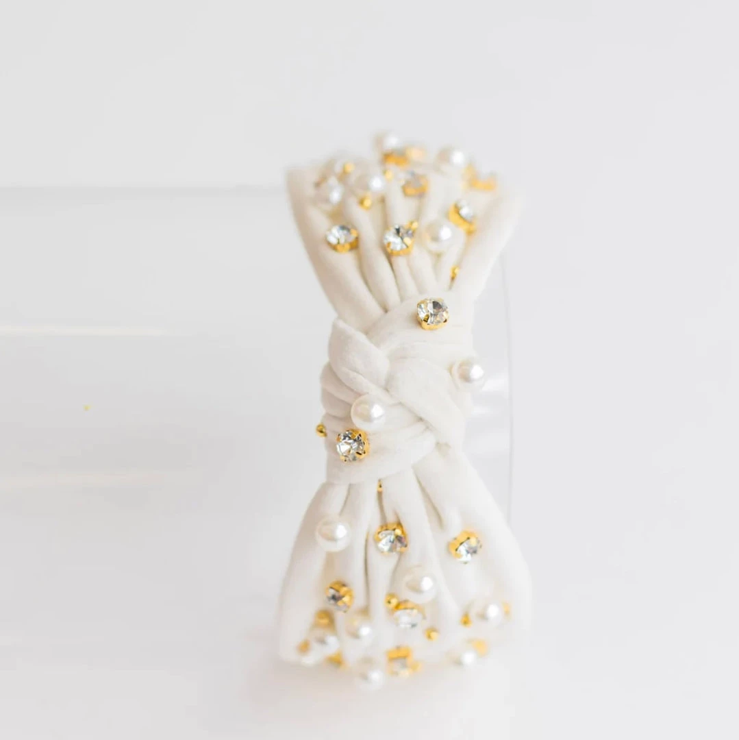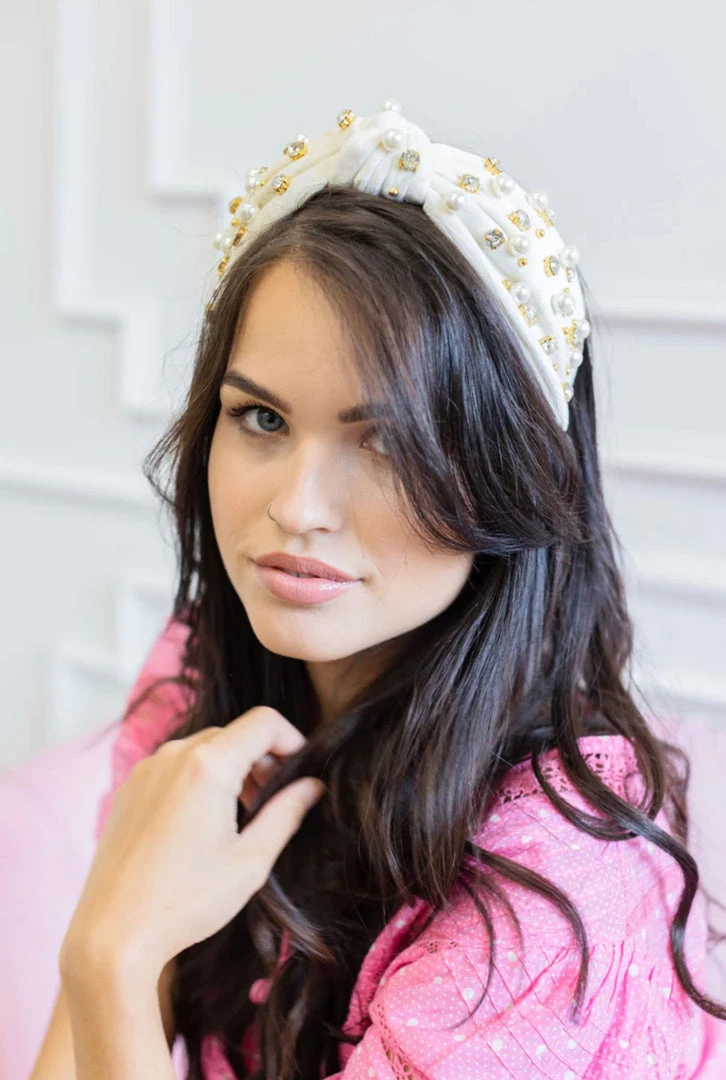Total show stopper! Glamorous and beautiful are just the words to describe this Suede White headband! With Jewel and pearl detailing you are sure to dress up any outfit!
