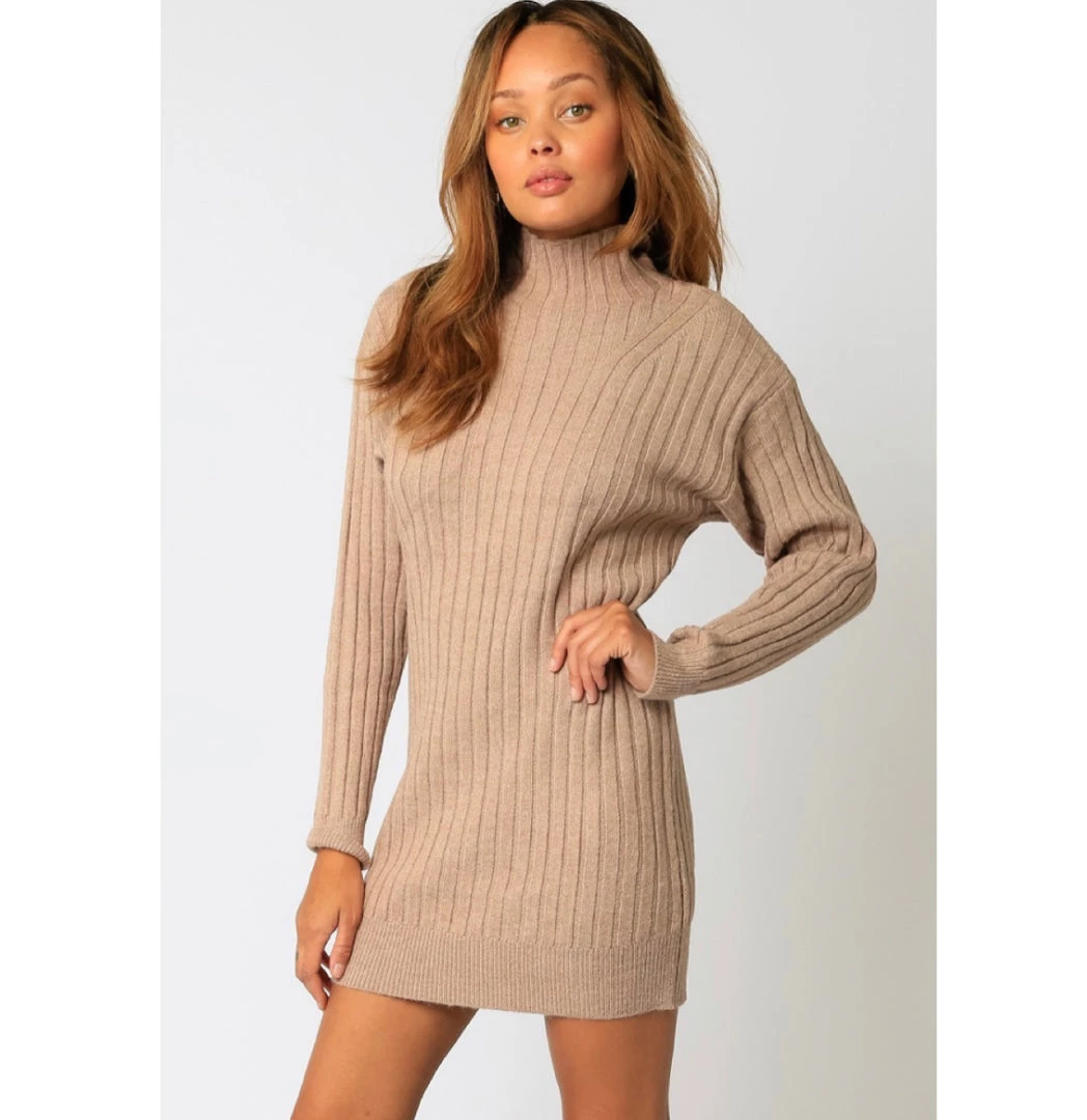 Description: Our Ribbed Turtleneck Sweater Dress features a relaxed waist and dolman sleeves.