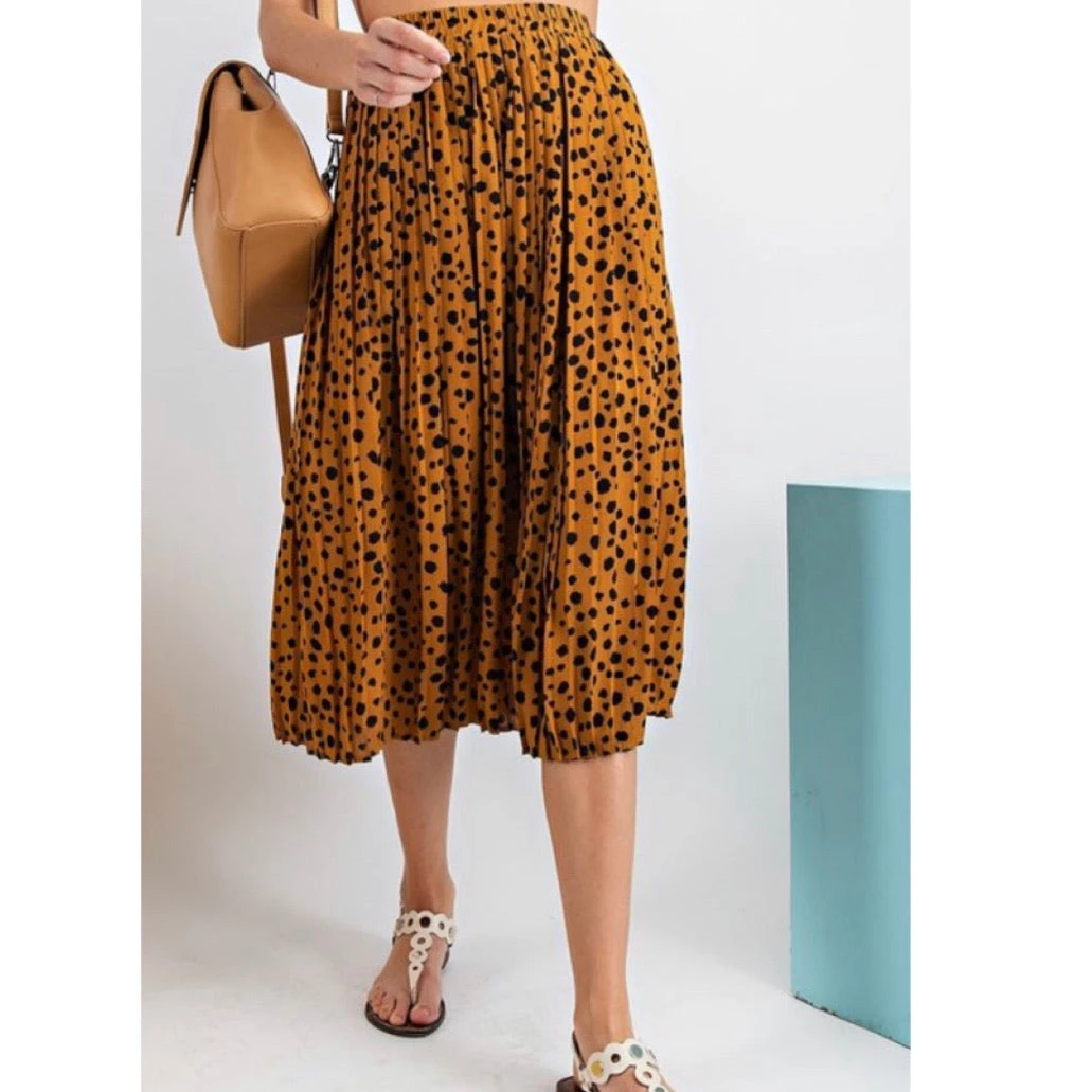Description: LEOPARD PRINT PLEATED WOOL PEACH WOVEN FABRICATION SKIRT