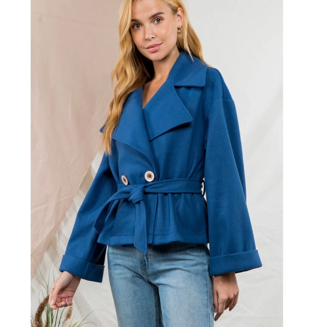 Be the first to review “Indigo Boutique Tops Navy Belted Jacket” Cancel reply