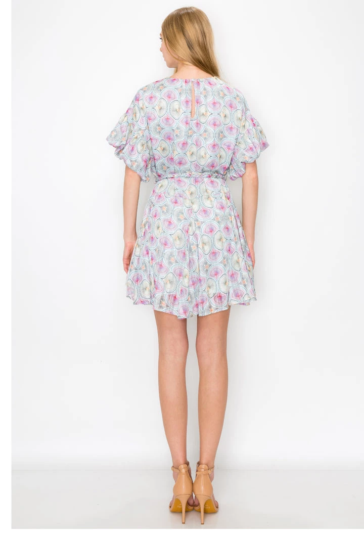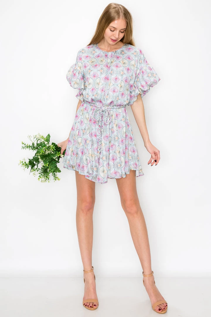 TEAL, PINK, BLACK MINI DRESS WITH BRAIDED BELT DETAIL