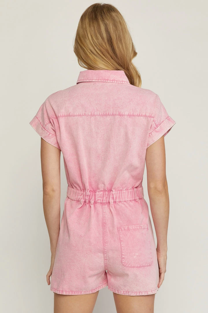 Pink Washed Denim Utility Romper